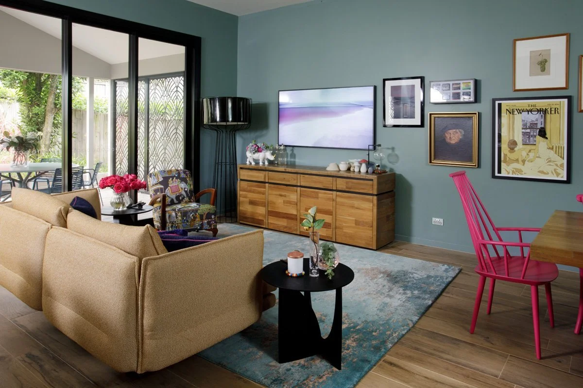 While initially engaged for an internal colour consultation, the home’s flamboyant owner and I quickly bonded over our mutual love of bold statement colours, and the rest, as they say, is interior design history.
