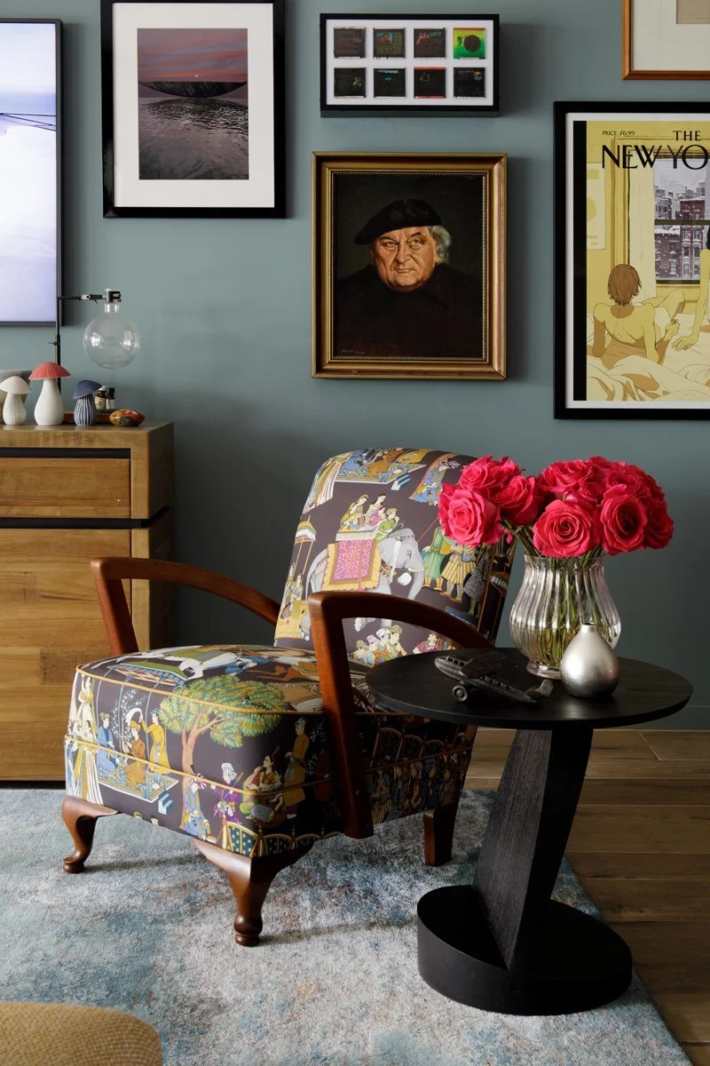 White walls were not an option for this home, as evidenced by my client’s eccentric taste in art and accessories. Hence the name of the project – The Art House. Courageous wall colours were selected to complement eclectic artworks and add depth to each room.